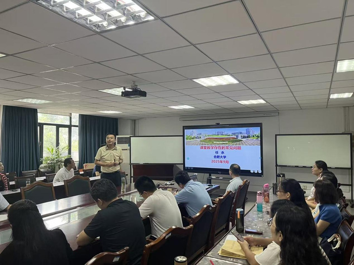 9月23日,值学校“教学质量建设年”开展之际,党委副书记、校长任永深入数学与统计学院教学一线,以“课堂教学存在常见问题”“做一名幸福的大学数学老师”为主题开展专题讲座,共同探寻教学育人与个人成长的幸福路径。教师发展中心工作人员、学院领导班子及全体教职工参会。