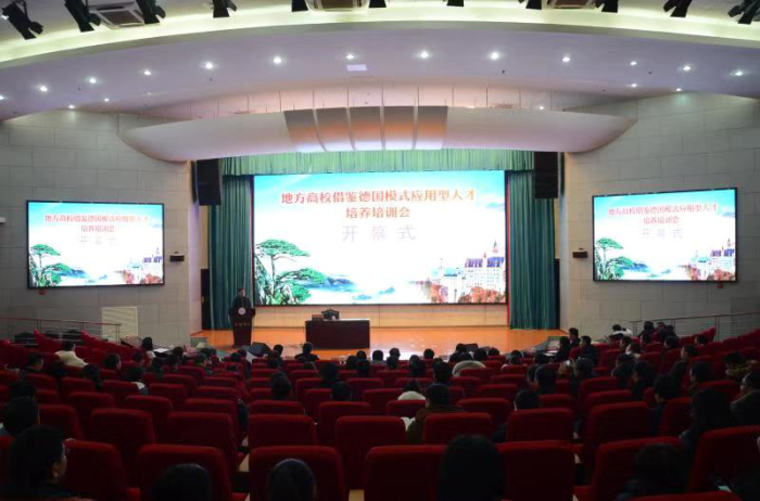 1月9日上午,与会代表在参观中德教育合作三十周年展后,在图书馆学术报告厅参加了培训会开幕式。我校各二级学院教学院长、专业负责人及新进教师三百余人到场聆听。