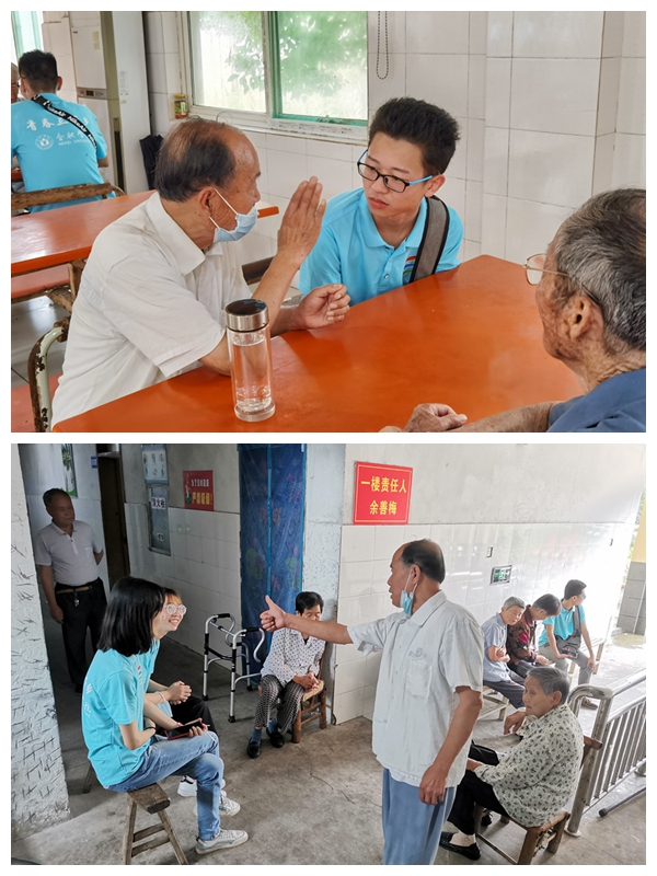 “老人们的笑容让我想起了我家里的爷爷奶奶、外公外婆,我回去之后一定要多陪陪他们。”7月18日,“生物之光”实践团队前往严店乡五保供养服务中心看望老人。