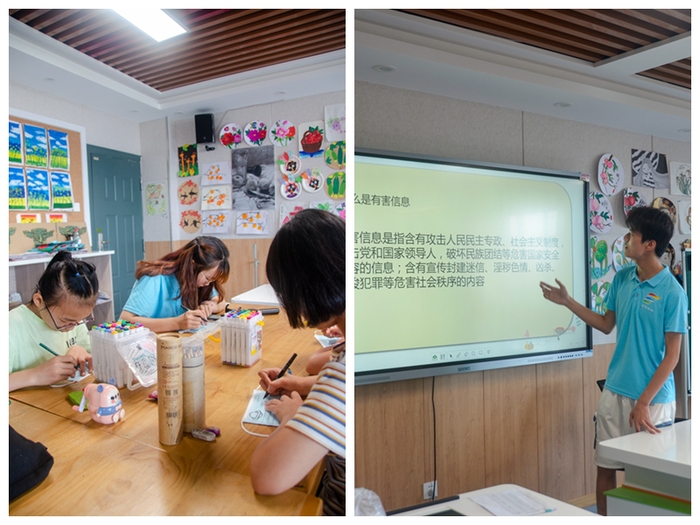 7月20日,实践团队前往严店乡中心学校进行防疫宣讲。成员们向小朋友们讲解新冠肺炎的危害和防护知识,并播放钟南山院士的纪录片,让小朋友们深入了解抗“疫”故事。