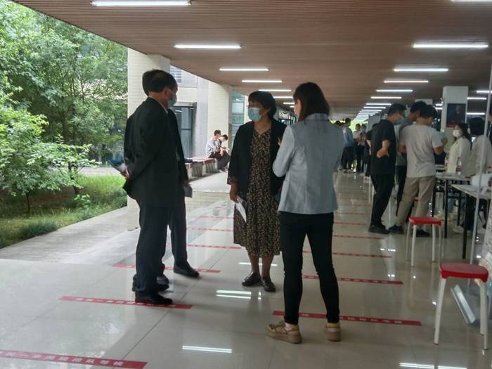 活动现场,企业代表为毕业生们详细介绍了企业文化、招聘要求并耐心解答了学生们的疑难困惑,双方就就业细节等交换了意见。毕业班辅导员老师们也积极为学生们推荐工作。招聘会期间,校就业指导中心学生助理积极引导、热心服务,现场井然有序,实现了疫情防控和促进就业两不误的目标。