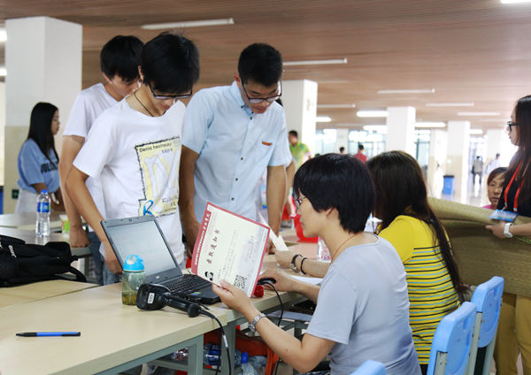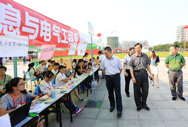 9月9日10日,合肥学院校园内彩旗飘扬,人潮涌动,喜迎2015级新生入学。在学校相关部门和各系的共同努力、协同配合下,2015级本科生、研究生新生报到工作顺利进行,共有近百名教工和千名学生志愿者参与了迎新工作。校领导张文兵、丁明等亲临现场,检查、指导迎新工作并向为迎新工作付出辛勤劳动的师生表示慰问和感谢。今年我校的迎新工作更加突出了“信息化、人性化”的特点,高效、便捷的迎新工作赢得了新生和家长们的连连称赞。