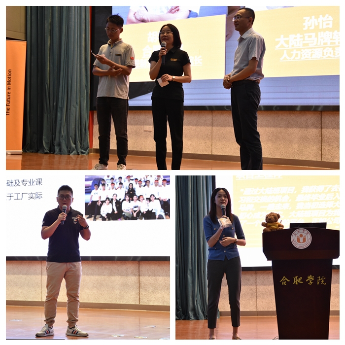 首先,大陆马牌轮胎(中国)有限公司招聘与雇主品牌经理李媛媛介绍了大陆集团及大陆马牌轮胎公司的组织架构、前沿技术、品牌定位,详细讲述了大陆马牌轮胎合肥工厂的概况、发展历程和市场规模。大陆班负责人张光从班级的基本概况、班级办学特色、大陆班的发展机遇与挑战、课程设置、学费标准等方面为现场同学详细介绍了项目情况。在答疑互动环节,先进制造工程学院院长胡学友、大陆马牌轮胎(合肥)有限公司人力资源总监孙怡讲解大陆班选拔流程,优秀毕业生代表畅谈在大陆班的成长故事,鼓励新生积极参与项目报名。