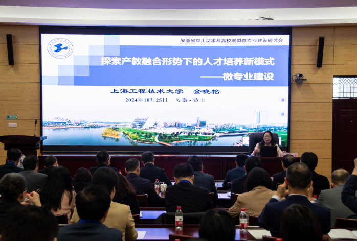 会上,上海工程技术大学教务处副处长兼党委教师工作部副部长金晓怡教授以《探索产教融合形势下的人才培养新模式——微专业建设》为题,作了专题报告,从运行机制、证书发放、制度建设、项目建设等方面介绍了本校在微专业建设方面的研究与实践,以人工智能微专业和无人机应用微专业两个典型案例,分享本校在微专业建设方面的特色做法和经验。