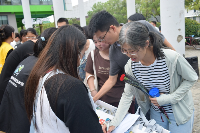 为感念师恩、礼敬教师,校团委、后勤部门还组织策划了献礼教师节活动。展架前,不仅有团委自主设计的精美文创产品,还有创意DIY合影活动,记录下了老师们温暖的笑颜。教工食堂准备了鲜花、水果、饮品等赠予就餐教师,营造了浓厚节日氛围。
