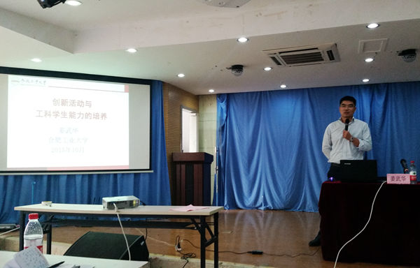 姜武华介绍了汽车工业背景及创新活动,包括汽车工业的地位、主要发展阶段及今后发展方向等。他就大学教育培养学生品质问题谈到国内外教育的现状,指出在培养大学生的创新能力,给学生提供理论和实践相结合方面,欧美工业强国做得非常成功。姜武华引用欧美国家教学案例,指出案例中活动对培养学会能力起到的不同作用,其中包括德国斯图加特大学“大学生方程式汽车大赛”。讲座中,他重点介绍了合肥工业大学大学生方程式车队参赛情况,主要包括赛车设计过程、加工过程、检测过程、训练过程、参赛过程等赛车制作主体环节。讲座结束后,储忠老师结合我校参加“飞思卡尔”比赛的经历、实际,对讲座内容意义进行了总结,并指出,今年是我校首次组队参加“中国大学生方程式汽车大赛”,希望大家积极准备,赛出合肥学院学子的风采。