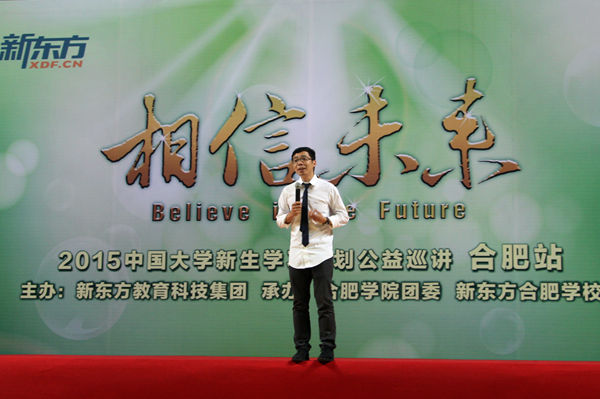 10月21日晚,由新东方教育科技集团主办,合肥学院团委、新东方合肥学校承办的“相信未来”2015中国大学新生学习规划公益巡讲合肥站在我校二区体育馆举办。新东方教育科技集团首批“集团演讲师”、口语教学专家李旭、新东方合肥学校校长孙东旭分别为我校2015级新生带来大学学习生涯规划第一课。