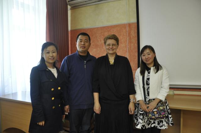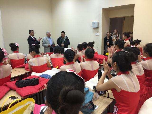下诺夫哥罗德国立格林卡大学指挥系主任,功勋教授VIKTOR KURZHAVSKII在赛后专门来到休息室,向我校合唱团表示祝贺,坦言这是他看到的中国合唱团中印象最深、感觉最美的一场,并期待能去中国交流合作。