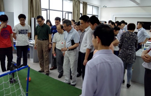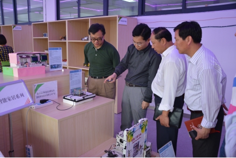 在计算机科学与技术系,大家参观了学生创新实验室,了解到计科系根据三个专业的不同特点,打造不同方向的创新实践教育活动,观看了机器人足球、智能交通、会游泳的机器鱼等学生作品。在电子信息与电气工程系,大家参观了大学生工程实践与创新教育中心与SMT工程实训中心,了解了电子系开展创新实践教育活动的理念与模式。