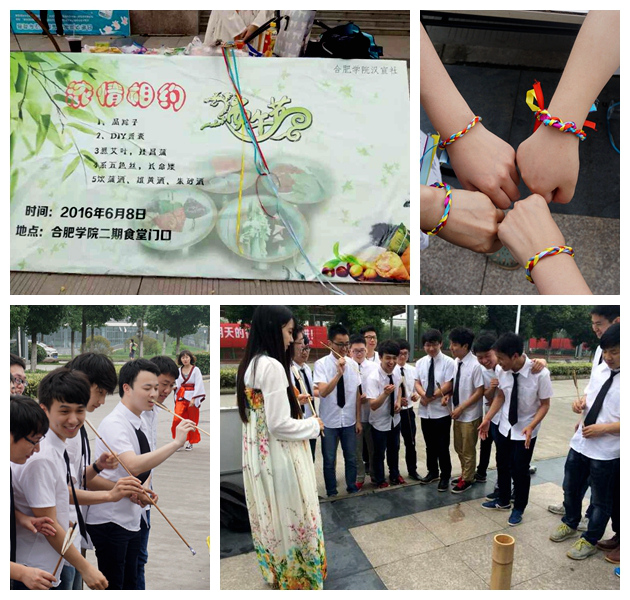 为继承和发扬民族优秀传统文化,营造欢快的端午节日气氛。6月8日中午,我校汉宣社于二区食堂门口举办粽情端午活动,通过游戏、知识宣讲等方式科普端午传统文化。