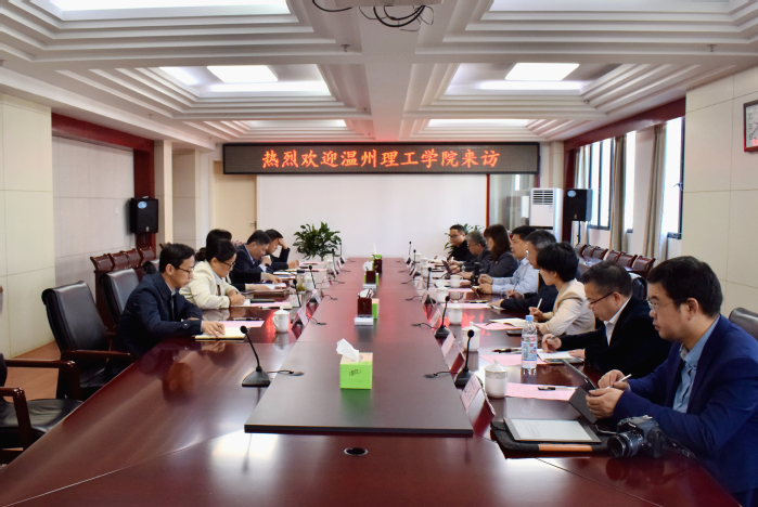 11月22日上午,温州理工学院党委副书记、院长周文龙,副院长吴向鹏、孙芙蓉一行来访我校,我校在行政楼九楼东会议室召开座谈会,院长吴春梅出席会议并主持,教务处、研究生处、科研处等相关部门负责人参加会议。