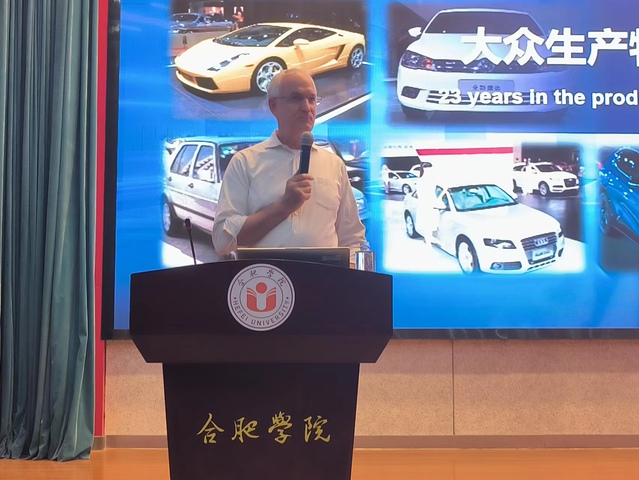 Am 31. Oktober hielt Prof. Schneider, Chief Manufacturing Officer von Volkswagen Anhui und Gastprofessor der Universität Hefei, im akademischen Hörsaal der Bibliothek eine umfassendenund anschauliche Vorlesung zum Thema fortschrittliche Fertigung und intelligente Netzwerkverbindungen für die Studierenden des Volkswagen-Instituts des Jahrgangs 2022.