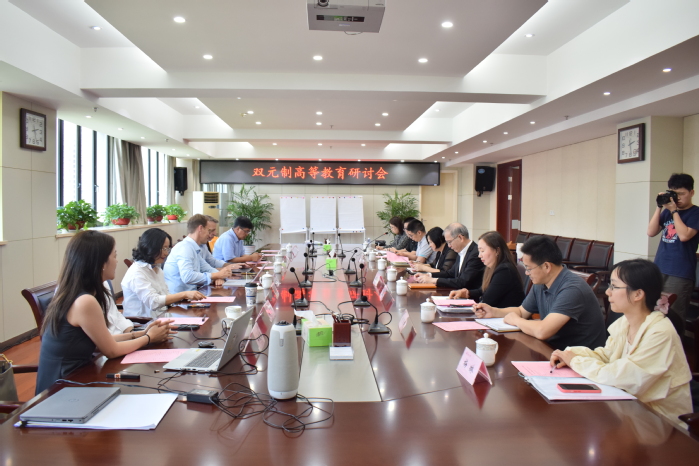 5月28日下午,2024年双元制高等教育(大陆班项目)研讨会在我校举行。德国埃姆登/里尔应用科学大学双元制项目负责人朗格教授、施密特教授,大陆集团双元制教育项目、人力资源部负责人,我校党委书记王其东出席会议,学校“双元制”大陆班相关部门和院系负责人等参加会议。