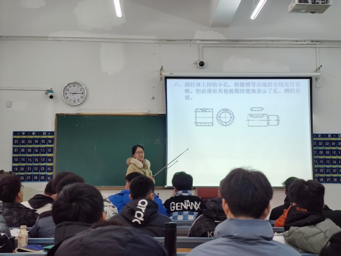 “每天最快乐的事情就是上课。”采访伊始,刘丹萍老师亲切地笑着说道。刘老师所教授的《机械产品表达》课程,旨在培养学生掌握绘制和阅读工程图样的基础技能,而想要学好其中的难点,绕不开投影法。投影是什么?大到航空航天制造、小到螺母配件生产都与其密切相关。将三维结构展现在二维图纸上,需要抓住每个视图中的主要特征并将复杂的线条直观化,这对空间想象能力要求极高。和大多数工科课程一样,起初同学们并没感受到投影法与他们习以为常的思政课有什么关系,甚至还因为内容抽象产生了畏难情绪。